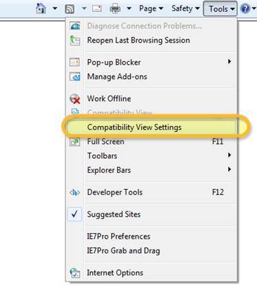 - 1.Open the IE8.0 browser, press the "Tools" button in the tool bar and select "Compatibility View Settings".