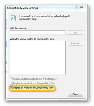 - 3.You can also select "Display all websites in Compatibility View" instead.