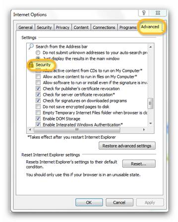 - 5.Find "Security" in the "Advanced" menu.